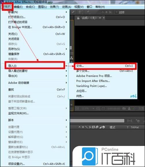 2、打开AE。然后,以合成的方式 导入分层的蝴蝶素材 ,并打开此合成。操作为 执行文件>导入>文件 ,或者直接使用快捷键 ctrl+i ,打开导入对话框,选择上一步制作好的蝴蝶素材,按如下图示操作:导入种类选择“ 合成 ”,图层选项选择“ 可编辑的图层样式 ”,然后点击确定。