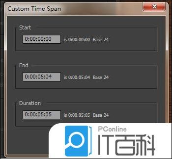 4、弹出的对话框有三项, start即开始渲染的位置 ,,如设为0:00:05:00即从第五秒开始渲染,end这一项若设为0:00:10:00即第10秒时结束,duration会自动变化,它表示的是这段视频的时间