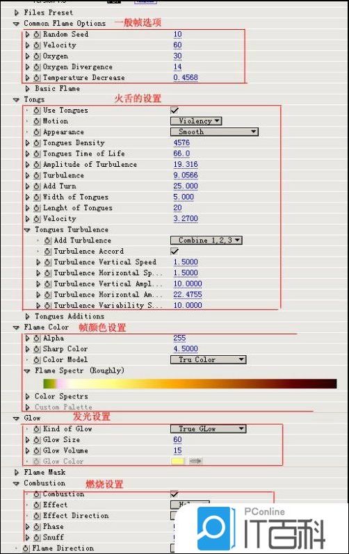 (二)引入特效Effect-> Panopticum Effect -> Pan Fire3,参数设置如图6-1所示。