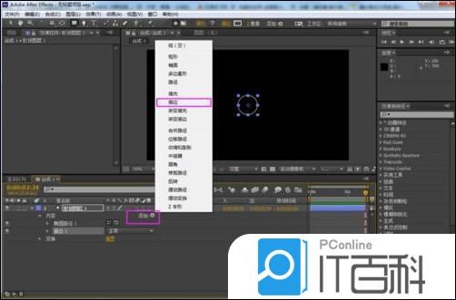 6、在特效窗口搜索“ 路径文本 ”加入中间的大圆图层上。
