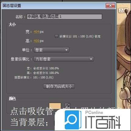 2、新建一个 固态层 ——吸取照片的背景色当背景图层;