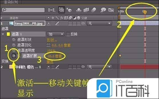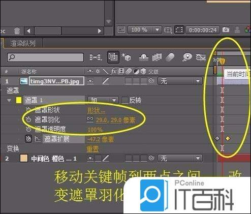 7、激活遮罩扩展——移动关键帧——再次变化一下遮罩扩展的数据即可;