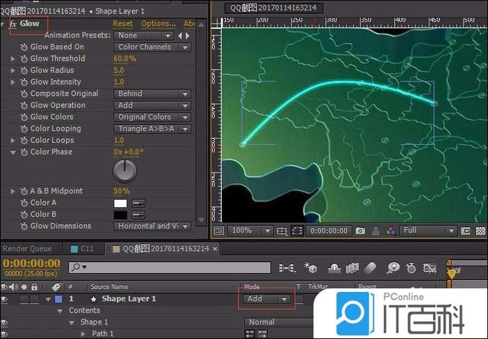 6、 加个glow特效并让图层叠加模式改为Add 。