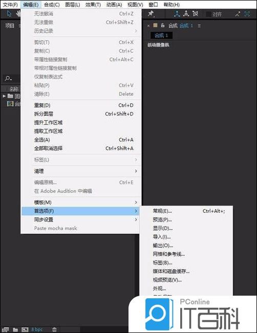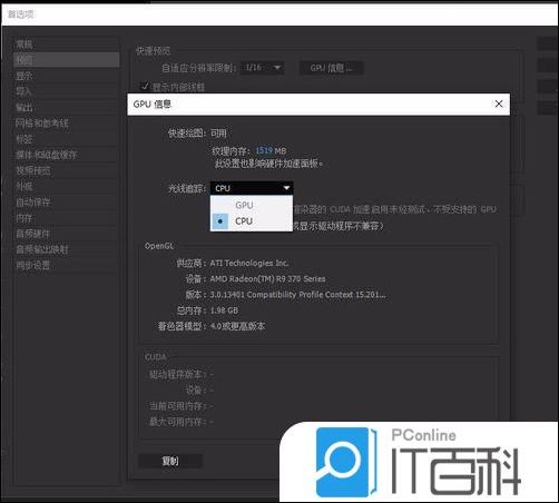 7、AE软件可以使用显卡渲染,所以也可以看一下自己的显卡支持不支持,还是 编辑-首选项- 预览 ,里面有快速预览GPU信息,打开看能不能选择 GPU ,如果能选择那就支持。