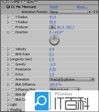 三、给上面的一层加上CC Mr.Mercury特效,设置参数如下: