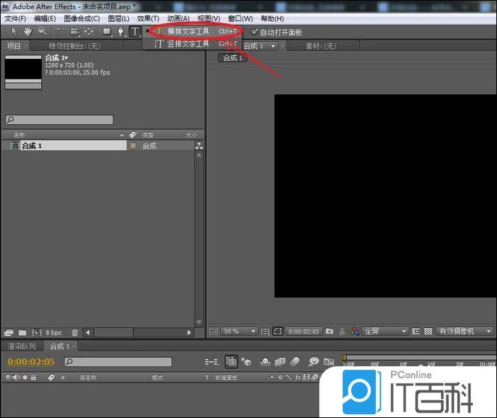 一、创建新合成并添加文字