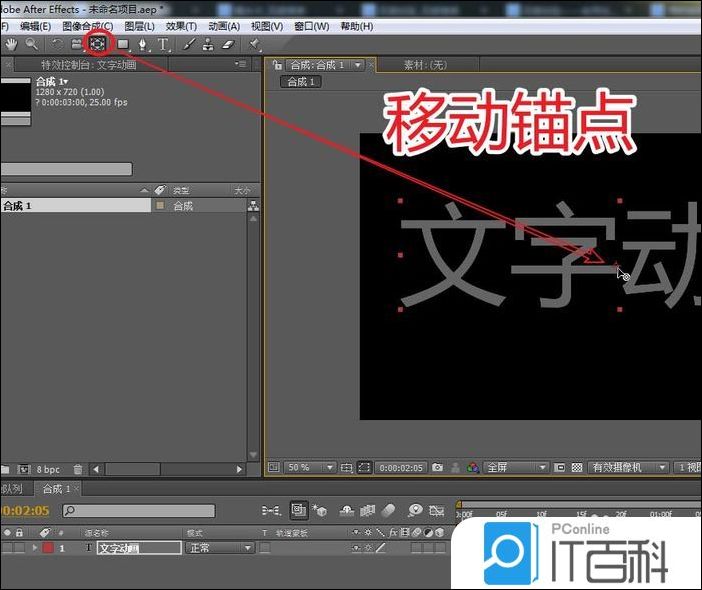 3、选择“ 定位点 ”工具,调整文字的轴心点位置。