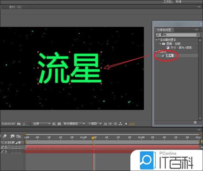 1、在我们的“ 效果和预置 ”面板,查找“ 辉光” 效果添加到新的文本层上。