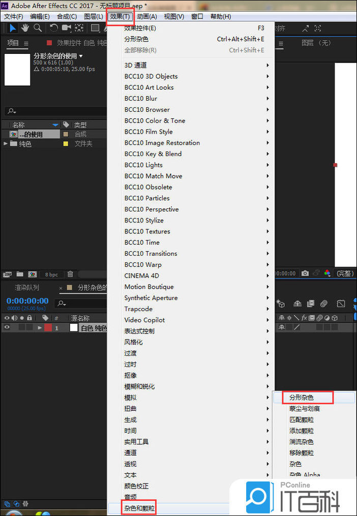 3、给纯色层添加 分形杂色效果 ;效果-杂色和颗粒- 分形杂色 ;