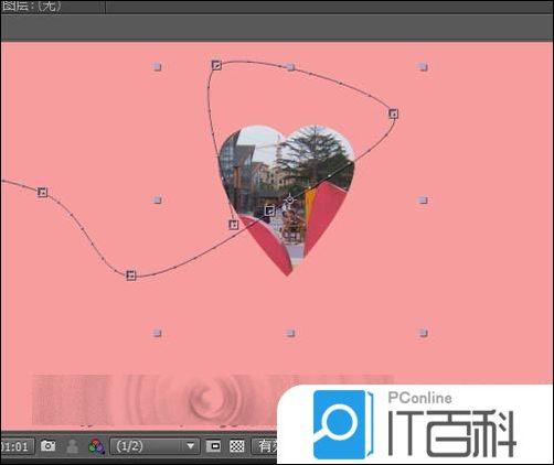 11、如果在它的播放过程中有哪一个地方的位置不太合适的话,直接用鼠标点击窗口上面的路径来移动一下心形的位置。