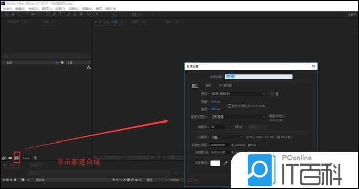 1、打开AE软件之后先新建一个项目,然后在新建的AE项目的项目窗口找到 新建合成按钮 ,单击新建合成按钮来创建一个 AE合成。