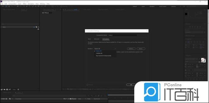 2、在新建合成的对话框中,点击 3D Renderer标题, 在Renderer选项框里面选择 CINEMA 4D ,点击 OK!