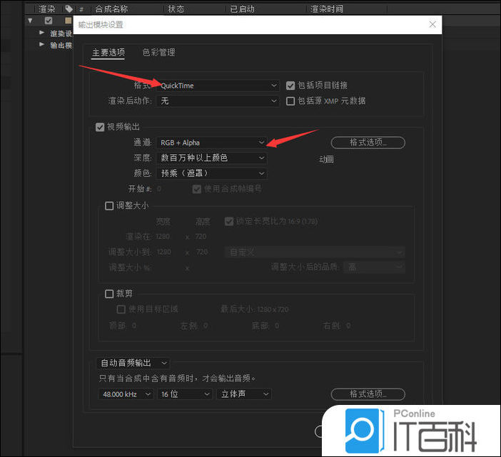6、 ctrl+m 导出 ,格式使用 quicktime , rgb+alpha 。