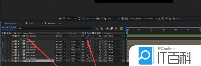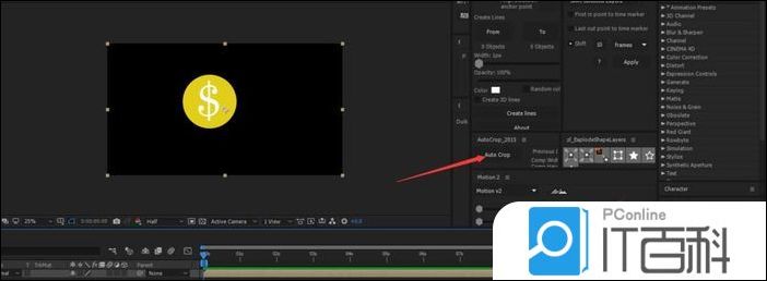 3、利用两个插件将预合成的大小裁切一下并将中心点设置到中心。