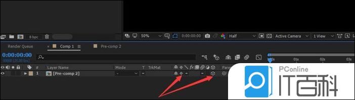 9、将所有的合成合并为一个预合成,并且打开小太阳标志和三维层开关。
