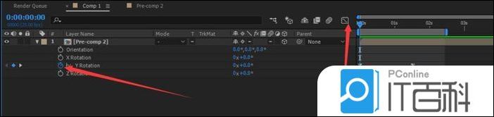 10、给这个预合成设置 y轴旋转的关键帧 ,然后调节关键帧之间的曲线。