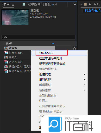 1、在目标合成上右键,打开合成设置,