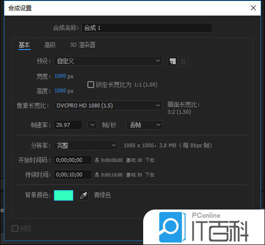 2、在AE项目中找到 合成菜单栏 ,点开合成菜单栏,在合成菜单栏中选择 新建合成 ,弹出合成属性设置窗口,在合成设置中设置合成的大小等,并将合成背景颜色改一下,不要默认的黑色。