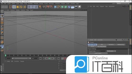 3、只是会自动打开C4D工程(注意一下现在的显示状态),默认会显示工程设置(右下角的Project就是),如果没看到设置面板,可以 Ctrl+D打开 ,但太小不容易观看,我们点击最右侧的+号按钮单独显示工程设置面板。