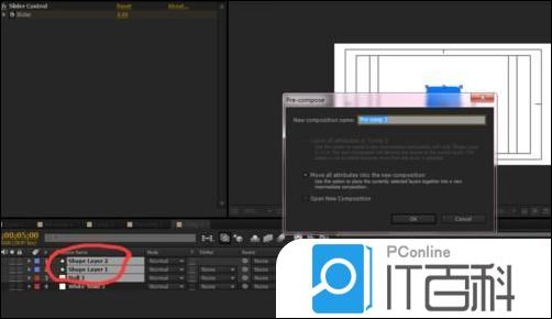 3、然后我们给形状层的位置加上表达式,我们先拾取控制层的位置,在位置后面加上 *再拾取滑块的位置 ,就可以了!