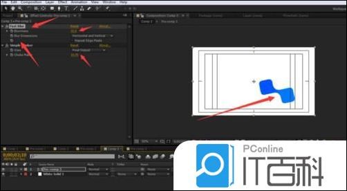7、在预合成层数加上高斯模糊,加上蒙版抑制,数值如图,大家也可以自己调整,如果方块的距离不够,可以回头调节滑块的数值!