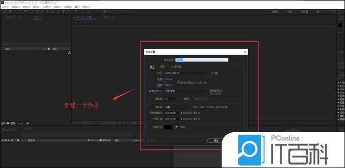 1、在AE中单击项目窗口下方的新建合成按钮, 弹出合成设置窗口 ,设置该合成的相关参数,点击确定创建一个合成。
