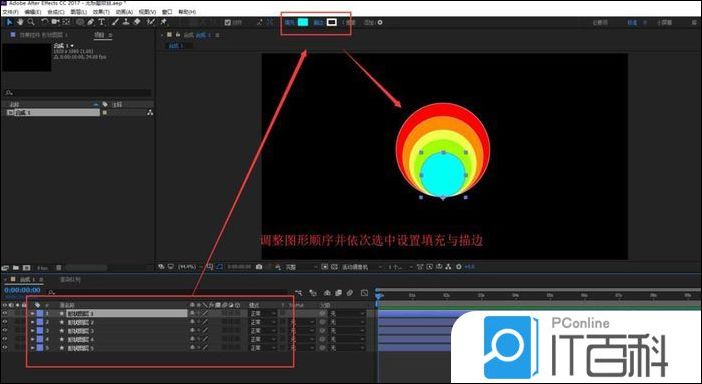 ae怎么制作多个颜色的圆形压边重叠的效果【详解】
