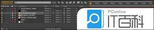 2、一个总的合成是由许许多多的合成合成而成的,在这里我们需要将自己的照片或者自己喜欢的图片替换,怎么办呢?我们先要找到承载图片的子合成。 方法就是双击总合成,一层一层的找下去。 我们来看看这个合成的图片位置。