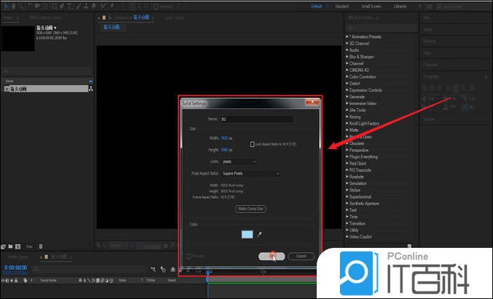 在合成中创建一个蓝色的固态层, 作为背景(BG);