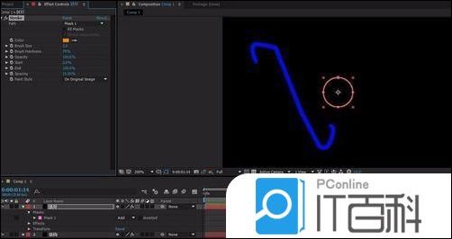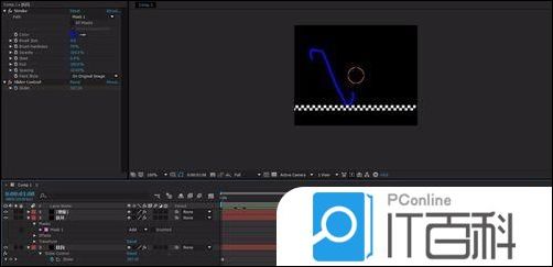 1、新建一个352*288的合成。滚铁环,需要有铁钩和铁环。新建固态层,用钢笔画一个铁钩, 描边路径 。