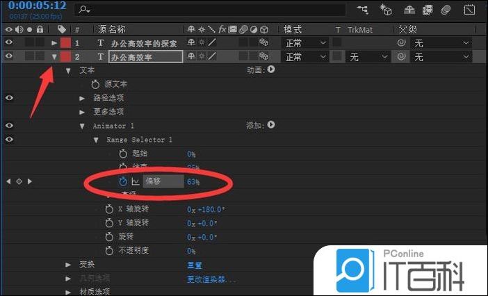 接着,我们将相应的图层左侧列表进行展开,从中我们可以找到我所添加的 动画效果 。
