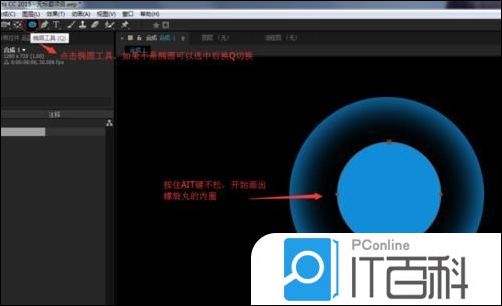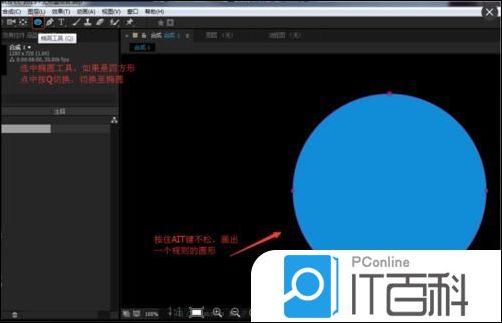 注意: 在屏幕中间画圆时,要按住AIT键不松手,不然画出的圆不规则