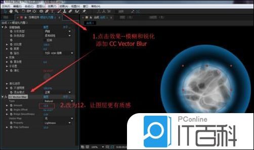13、添加效果 CC Vector Blur 是在效果--模糊与锐化当中,朋友们可以搜索,调整参数,这图层更有质感。