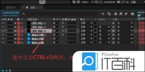 15、现在颗粒是往一个方式运转的,我们再复制两层,选中黑色固态层/纯色 按两次 CTRL+D ,好了,又出现两个图层。