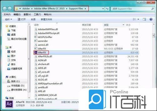 3、找到AE安装目录下的 AfterFX.exe 发送到桌面快捷方式。