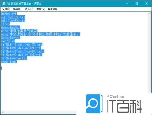 3、保存并推出, 讲该文件的扩展名改为bat ,例如文件名为: AE 语言切换.bat