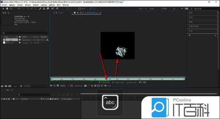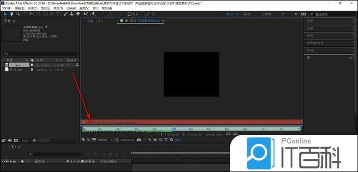 1.打开AE软件,导入视频素材,双击素材在窗口中进行预览。