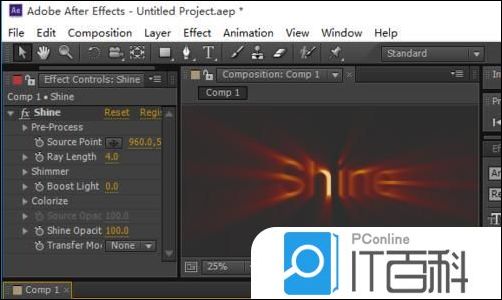 6、最后安装完成,打开AE,在特效里面可以看到 Shine了。