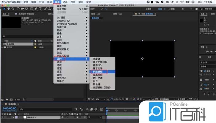 3、选中调整图层,点击【 效果】->【过时】->【快速模糊 】,实现新鲜鸡蛋质感。设置参数,模糊度。