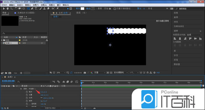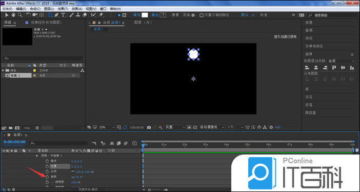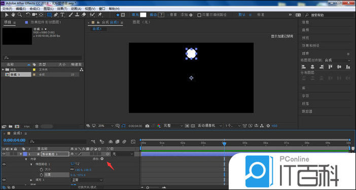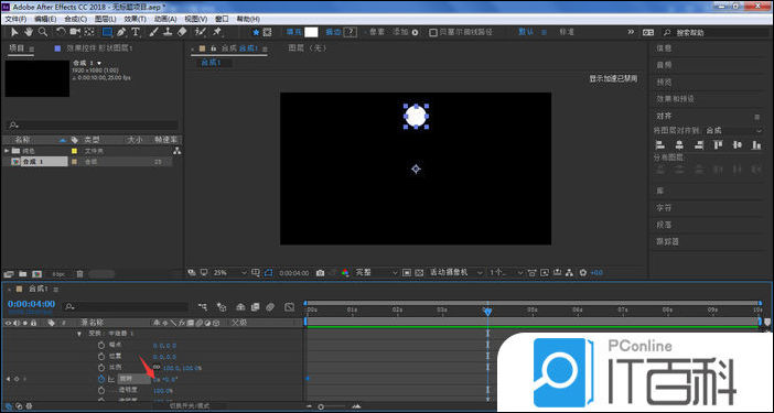 调整位置属性的Y参数,让圆形可以绕着锚点做 旋转运动