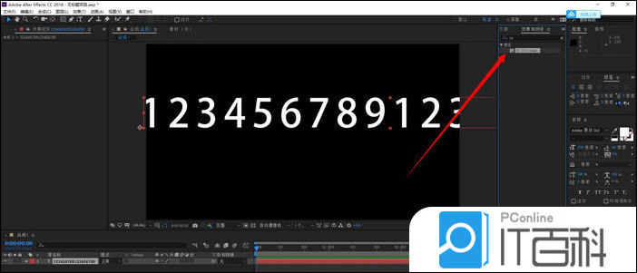 1.新建合成后,在合成上输入任意文字(长一些)