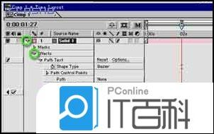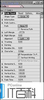 首先我们要点Composition/New Compositio建立一张图纸以用于在上面作字Layer/New Solid 在点Effect/Text Path Text出现对话框输入你需要的文字,完成后点OK