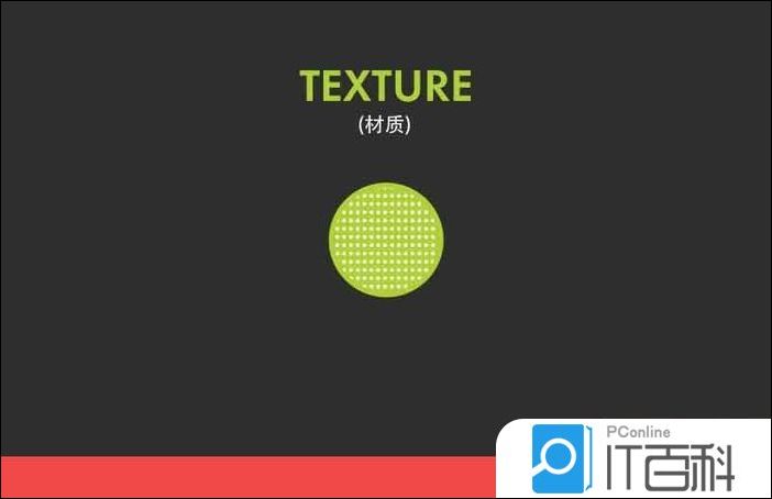 材质指的是物体的表面的质感,它可以使我们联想到我们触摸时的感觉。当一位艺术家想利用物体表面的对比去产生视觉兴趣时,他就会使用材质。
