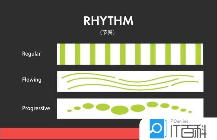 规律的节奏发生在元素的间隔,而元素的本身,通常是相同的大小和长度。