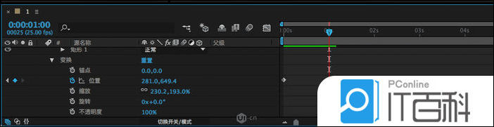 然后拖动指针到01s再调节位置后面的坐标参数,我这里是做Y轴的变化,所以就只调节Y轴坐标的数值就可以。这样从0到1s的位置动画就做好了。非常简单吧。除了位移外,缩放旋转这些也是同样的道理。