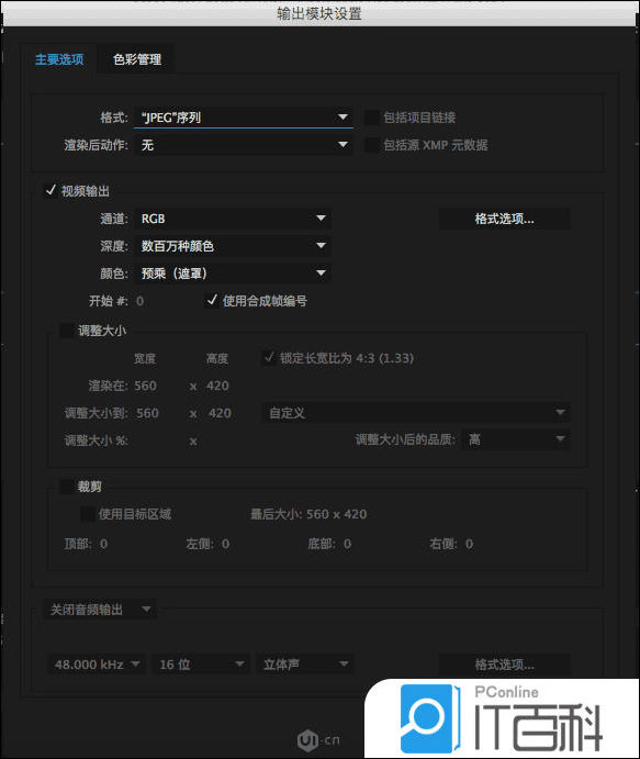 5.效果做好后可以预览一下,没问题就可以合成了,合成快捷键OSX (shift+command+M),WIN(Ctrl+M)因为我们要导出GIF图,所以就渲染为图片的序列帧,然后倒入PS储存为WEB格式就可以了。渲染的参数设置为JPEG序列或者png序列都可以,考虑到大小所以选择JPEG格式。