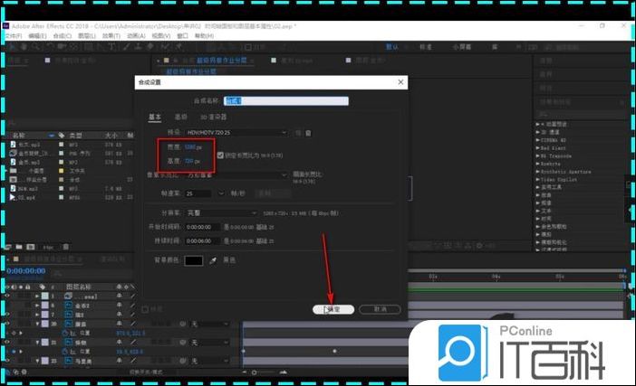 4.在面板中修改视频尺寸,点击确定。