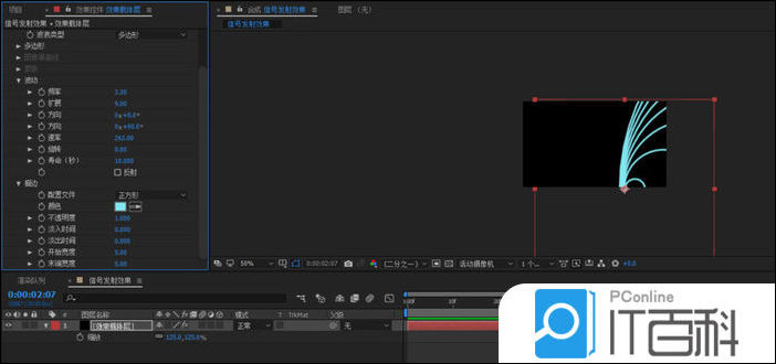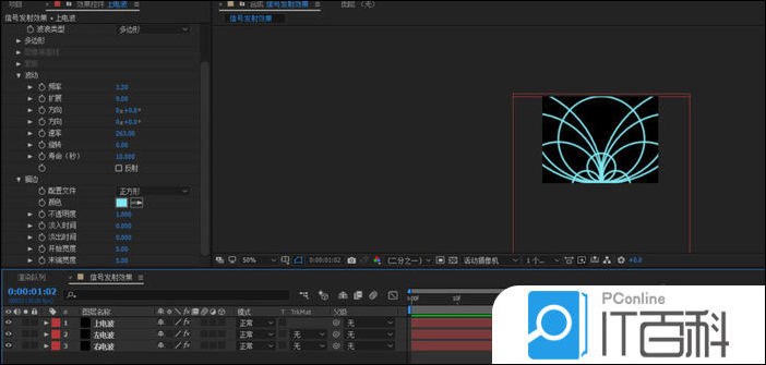 打开AE软件,命名信号发射效果,调整相应的参数。