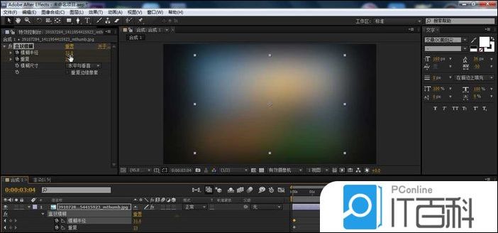 最关键的步骤就是这些参数(模糊半径、重复以及模糊尺寸)的设置,只要参数前面有小秒表标识的,都是可以设置关键帧变化动画, 来实现更多的渐变动画。这样题目里的 效果就制作完成。