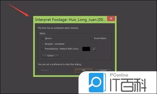 4、点击打开按钮, 弹出Interpret Footage对话框 ,如图所示: